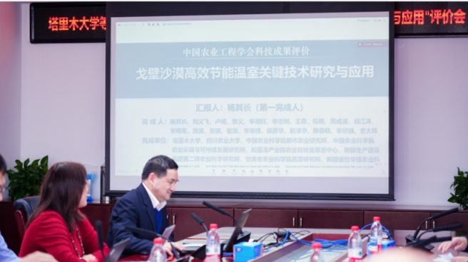 专家组认真听取了报告,仔细审阅了技术资料,并围绕创新点凝练、核心数据核实、国内外技术对比、应用场景创新与拓展等方面,提出了专业且具建设性的质询意见和完善建议,就土地利用率计算依据、温室最大内外温差、基质配比参数等关键问题与项目团队深入交流。最后,专家组针对成果的系统性、科学性、创造性、先进性、可行性和实用性等进行了综合评价,一致认为,该成果立足我国戈壁沙漠非耕地开发利用的国家需求,针对性破解了戈壁沙漠设施农业的系列技术难题,技术创新性强、实用性好,总体达到国际先进水平,其中温室主动蓄能调温技术达到国际领先水平。